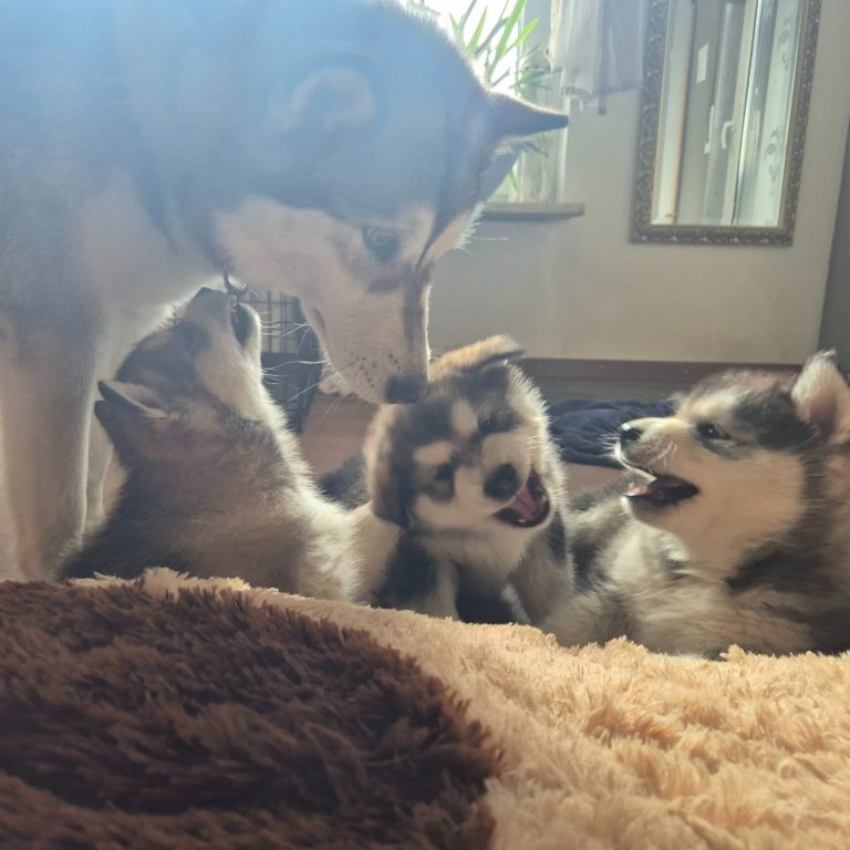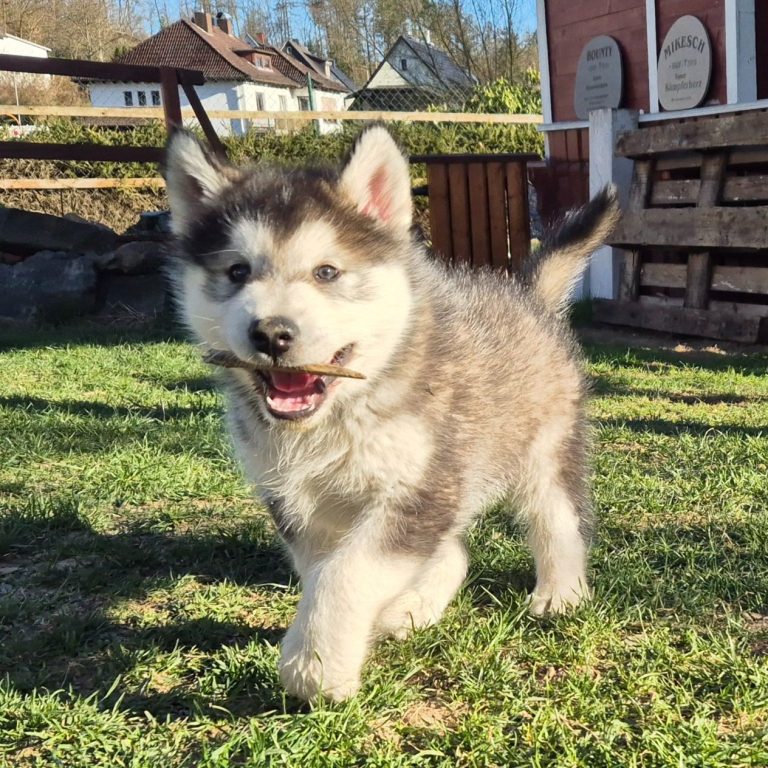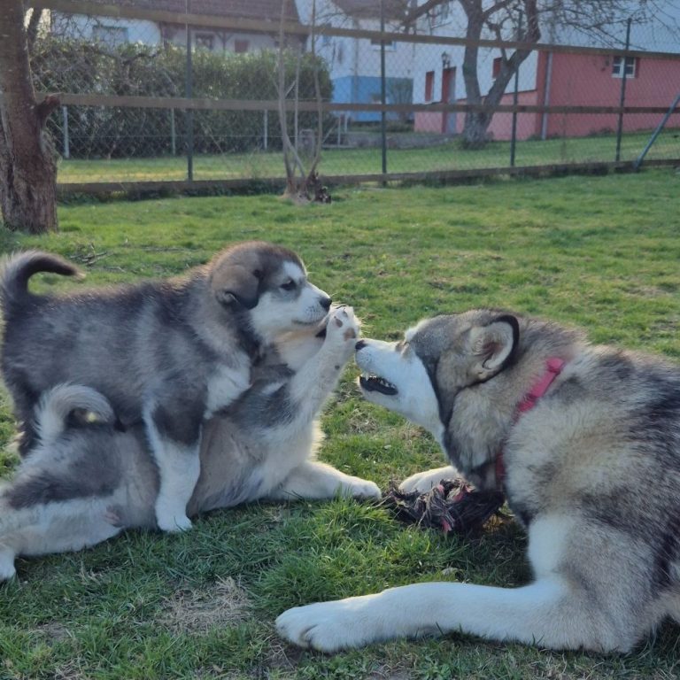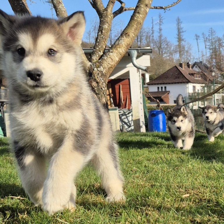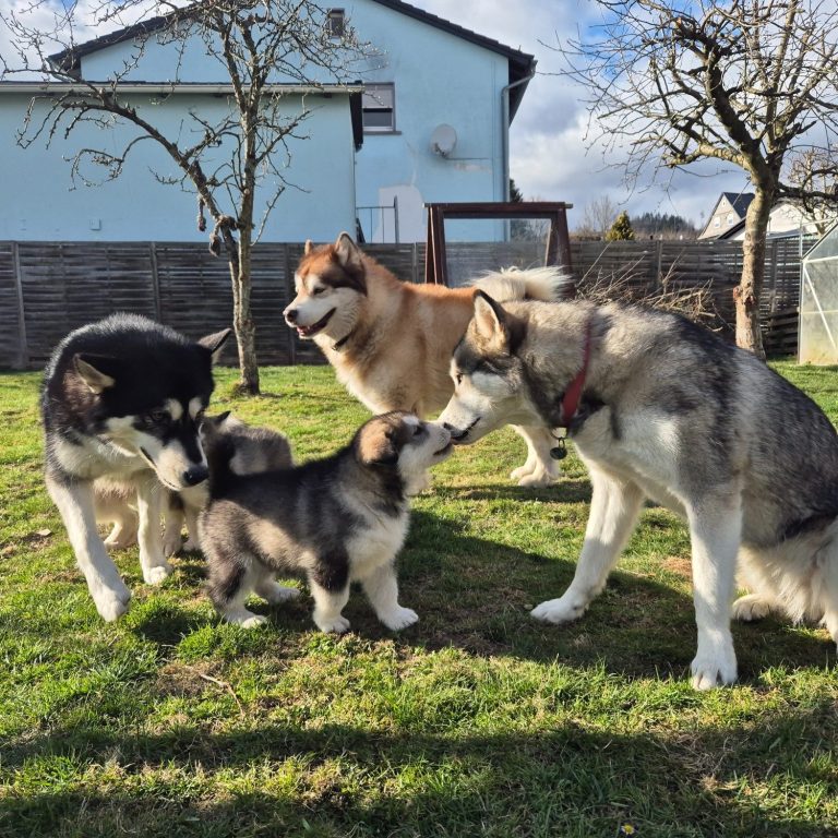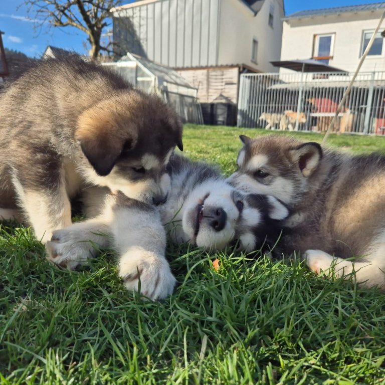 In der Nacht von Valentinstag zum 15.Februar 2025 ist unser B-Wurf gefallen. 2 Rüden und 1 Hündin wurden geboren. Der Wurf wird liebevoll aufgezogen und engmaschig begleitet in der 8. Woche vom Zuchtwart des Alaskan Malamute Club e.V. geprüft und abgenommen.